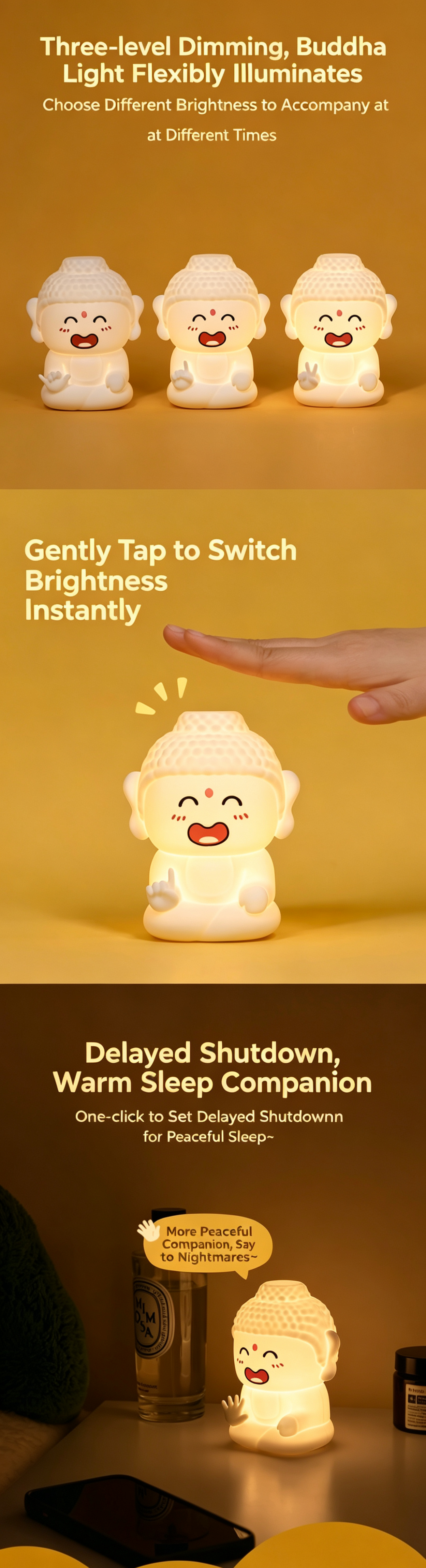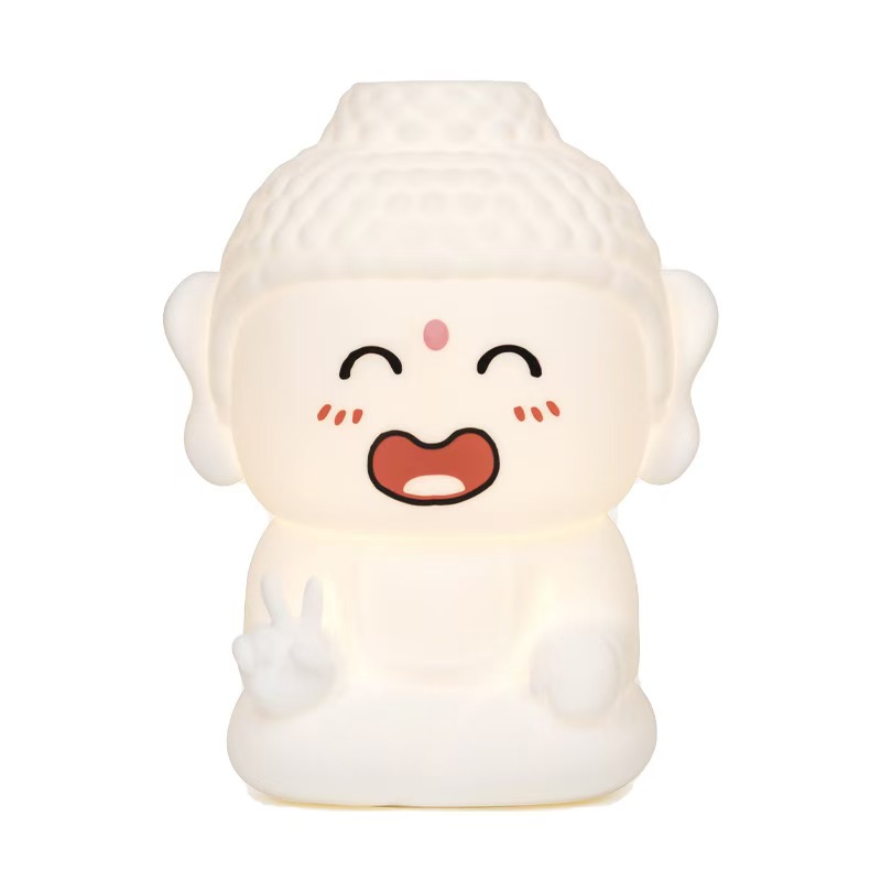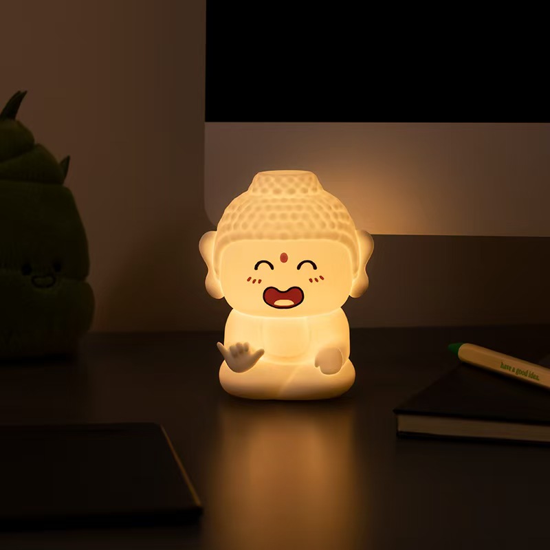 Cute Buddha Night Light, Rechargeable Silicone Bedside Lamp, 3-Level Dimmable Tap Control Nightlight with Timer, Creative Desk Decor for Stress Relief