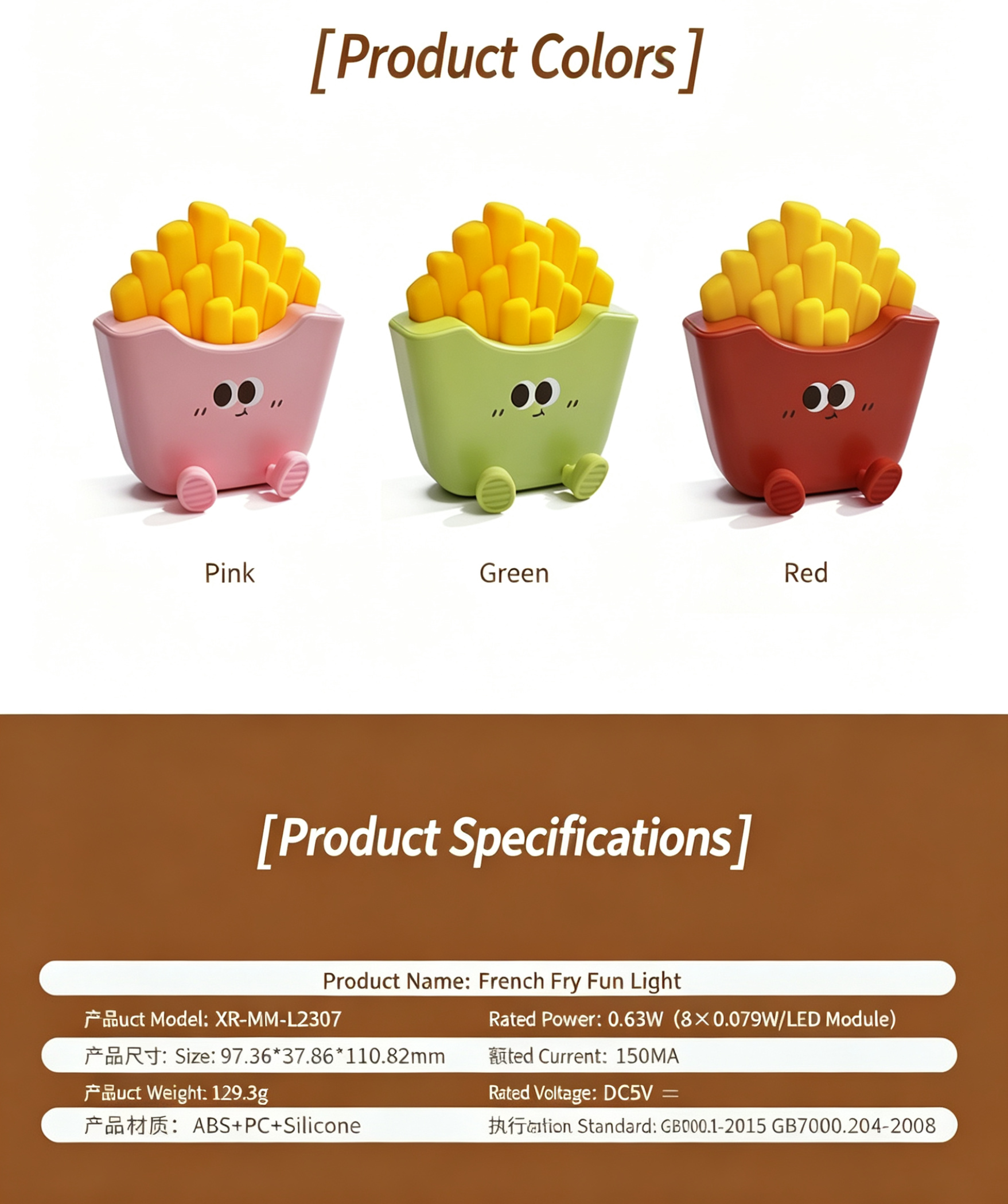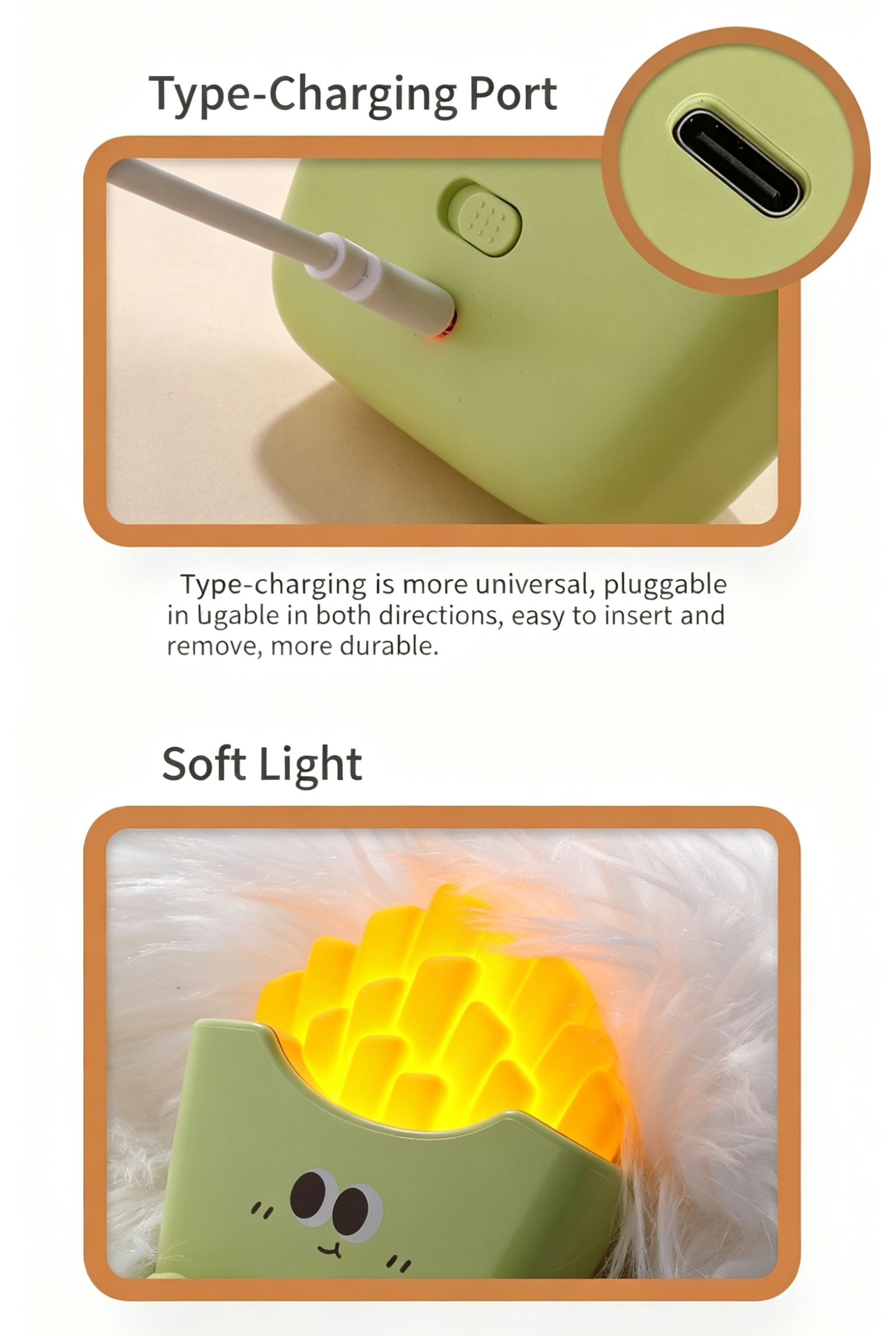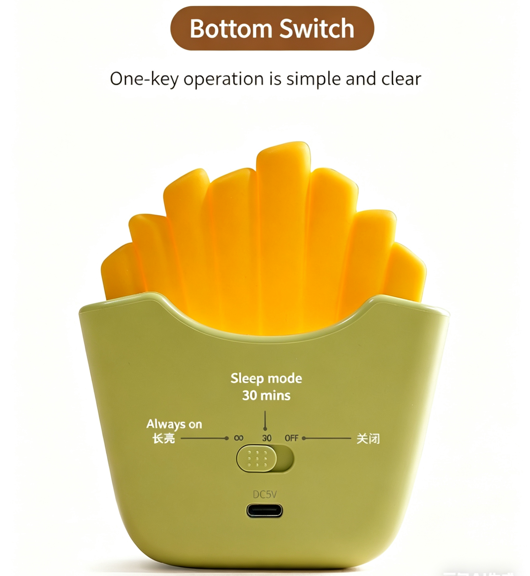 Cute French Fries Creative Cartoon Ambient Light, Soft Eye-Care Sleep Companion Night Light, Desktop Ornament, Bedside Lamp, In Stock
