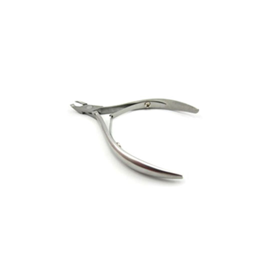 This is a pair of cuticle nippers with an ergonomic design. It is made of high-quality metal with a glossy finish. This pair of cuticle nippers is a finger cosmetic tool for use at home or in a nail solon.