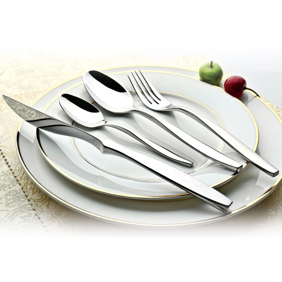 This cutlery set includes tea spoon, a table spoon, a table knife and a table fork with a matching design. The robust stainless steel construction offers long-lasting durability. The simple yet elegant design blends into any home decoration easily.