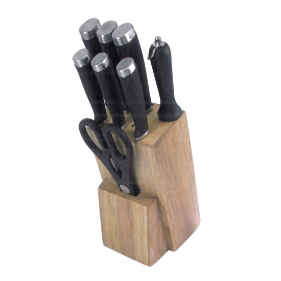 This is a high-quality cutlery set with 9 pieces. It comes with six kitchen knives, a sharpener, a kitchen shear and a rubberwood block. This cutlery set is reliable and safe to use.