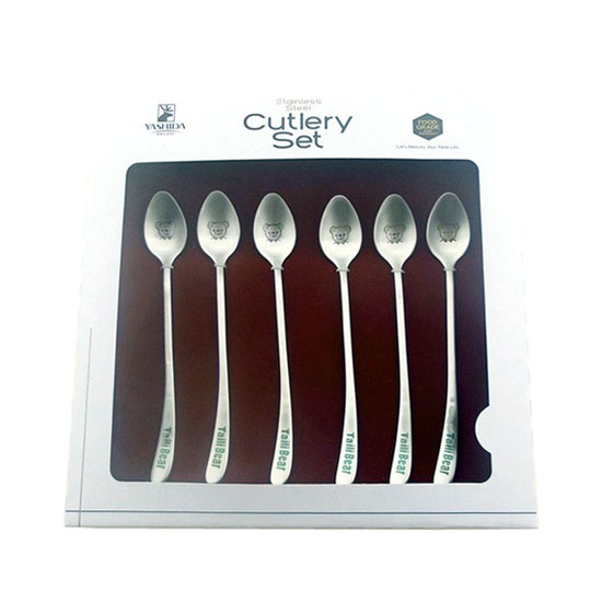 This is a cute cutlery set with six spoons. It is made of quality stainless steel for a long service life. This stainless steel cutlery set is designed for little children.