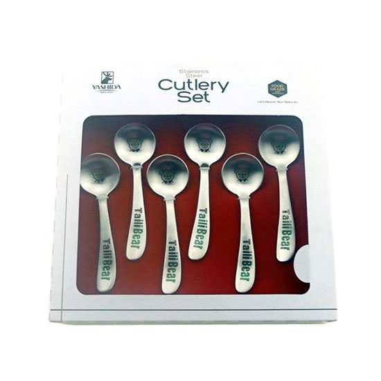 This cutlery set is designed with six spoons. It is made of quality stainless steel for a long lifespan. This cute stainless steel cutlery set is a great choice for children.