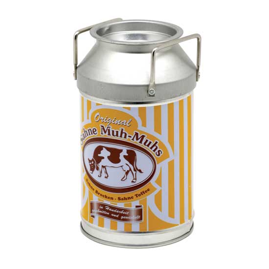 The chocolate tin flaunts the appearance of a delicate milk can in cylindrical shape. The beautiful graphics offer added style. This fancy chocolate tin makes a great collectible item.
