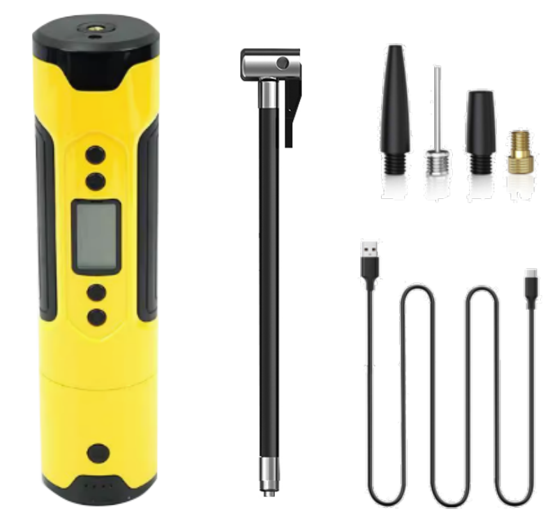 5-Spart parts: one presta connector, one ball needle, and two mattress adaptors