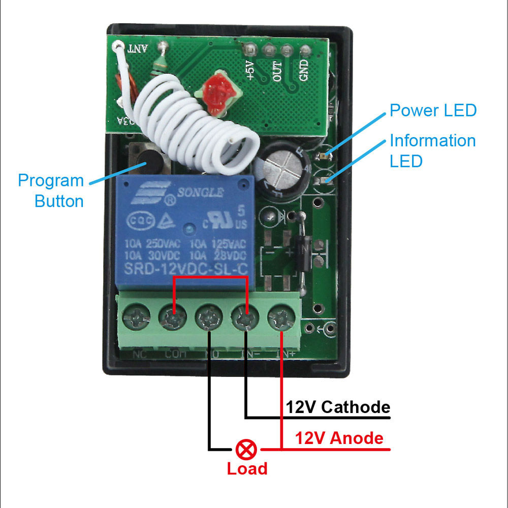 Press the program button on the receiver until the red light turns on, and then release the program button, the red light will stay on.