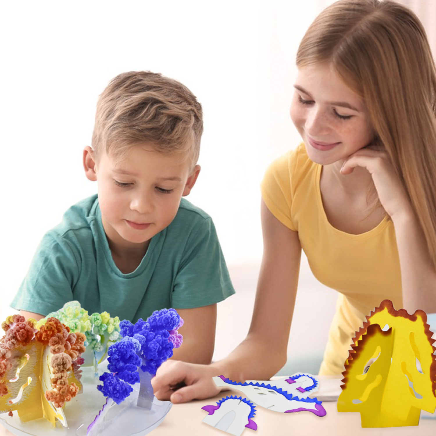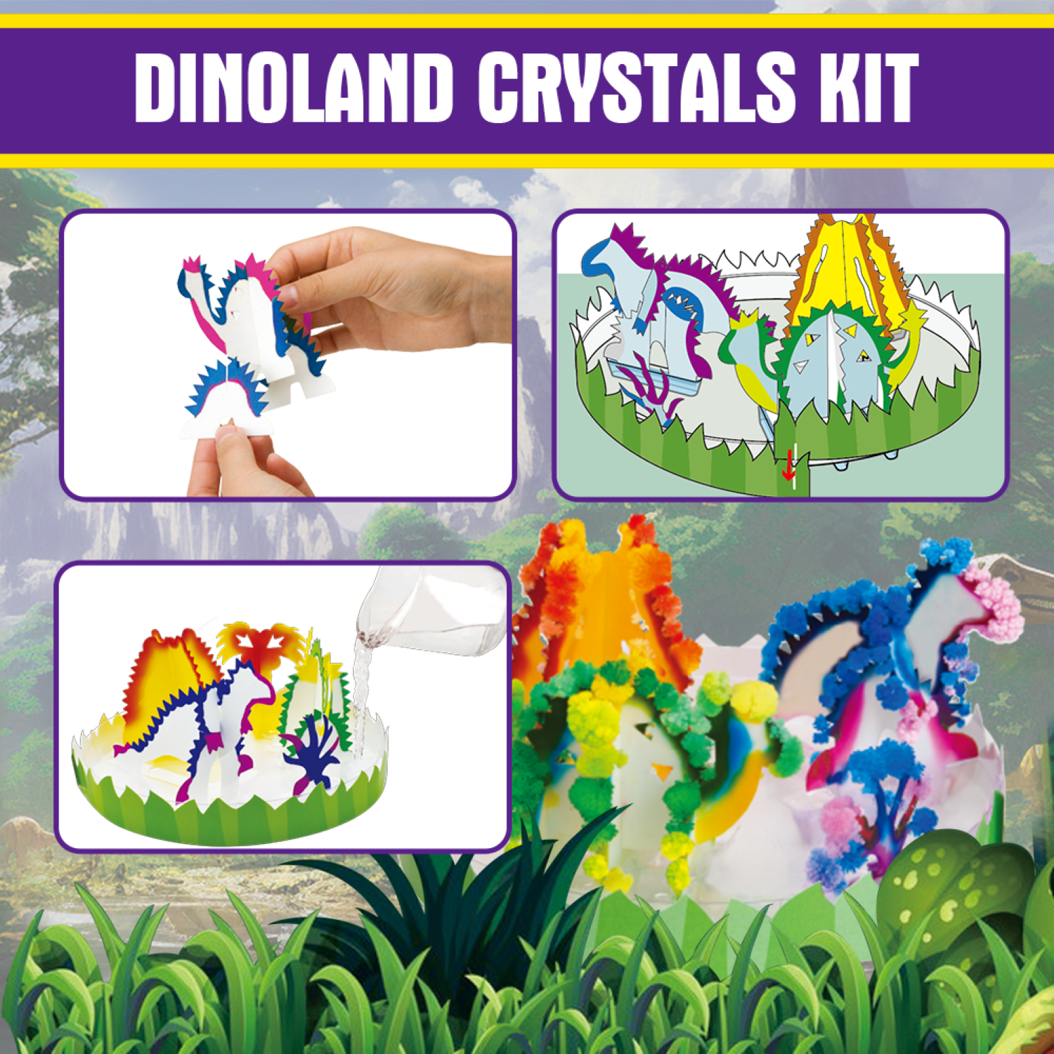 This DINOLAND CRYSTALS KIT allow you to make amazing crystal growing experiment. Once you add the crystal growing solution, you'll see crystals start to form like magic within minutes~!