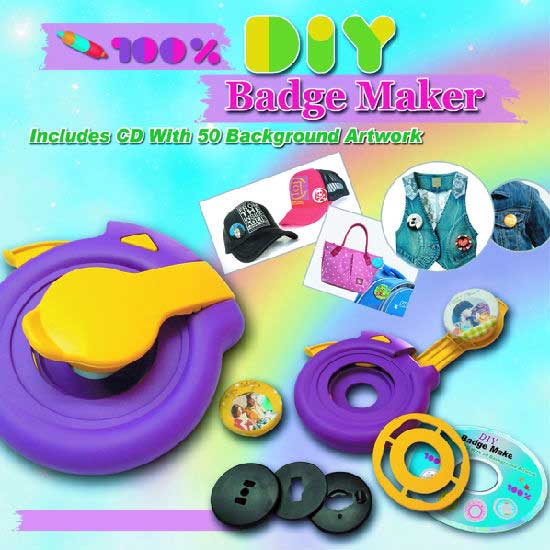 This is a DIY badge maker in bright colors. You can take a photo or draw a picture, then use this badge maker to make your own badge and create your personal style. This DIY badge maker is a great toy for your little one to play with.