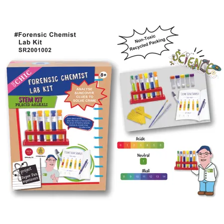 Contents: 15PH strips , 5 cryovial tubes with test samples , test tube rack , 4 large test tubes , 2small test tubes , dropper , brush , PH chart , worksheets