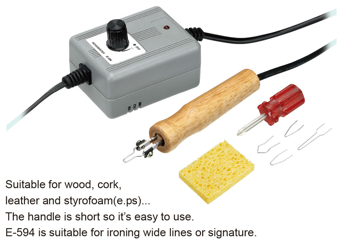 Highlighted here is a DIY pyrography tool with 5 different interchangeable tips. It has a temperature controller and can adjust the temperature to handle different pyrography tasks. This DIY pyrography tool has a wooden handle for comfortable holding and is excellent for using on wood and leather.