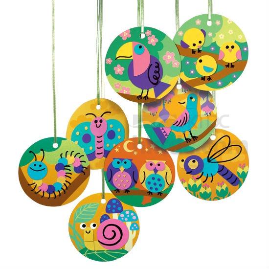 Let your kids make and hang lovely charms with cartoonish birds and animals in their room by getting this DIY sticker set. This set includes circular pieces printed with guidelines of adorable animals like owls, caterpillar and more, along with separate sheets filled with tiny stickers that fit the guides perfectly. Your children can follow the included instructions and stick the corresponding little stickers onto the circulate plates. To complete their DIY charms, they can use the included marker to draw smiley faces, wings or legs onto the pieces and attach ribbons onto their pre-cut loops. Get this well-designed set so your kids can experience the feeling of accomplishment and success while having extra delicate charms to decorate their rooms.