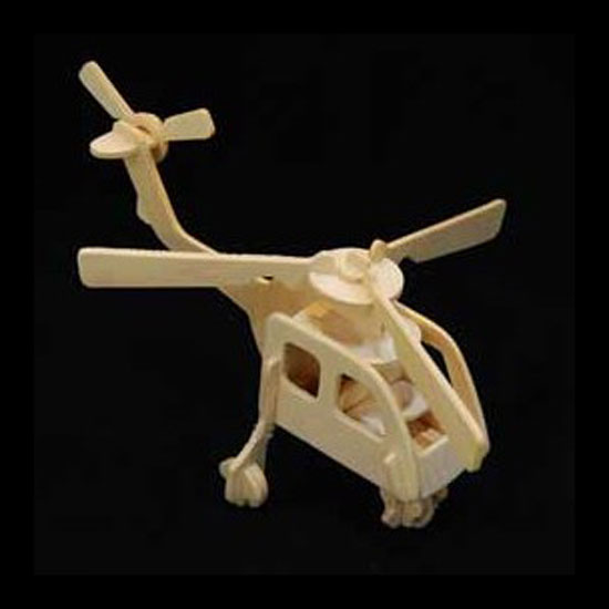 The toy helicopter comprises a number of shaped wooden pieces. After full assembling, the piece boasts vivid and accurate construction. It is also easy to assemble and only requires little time for drying.