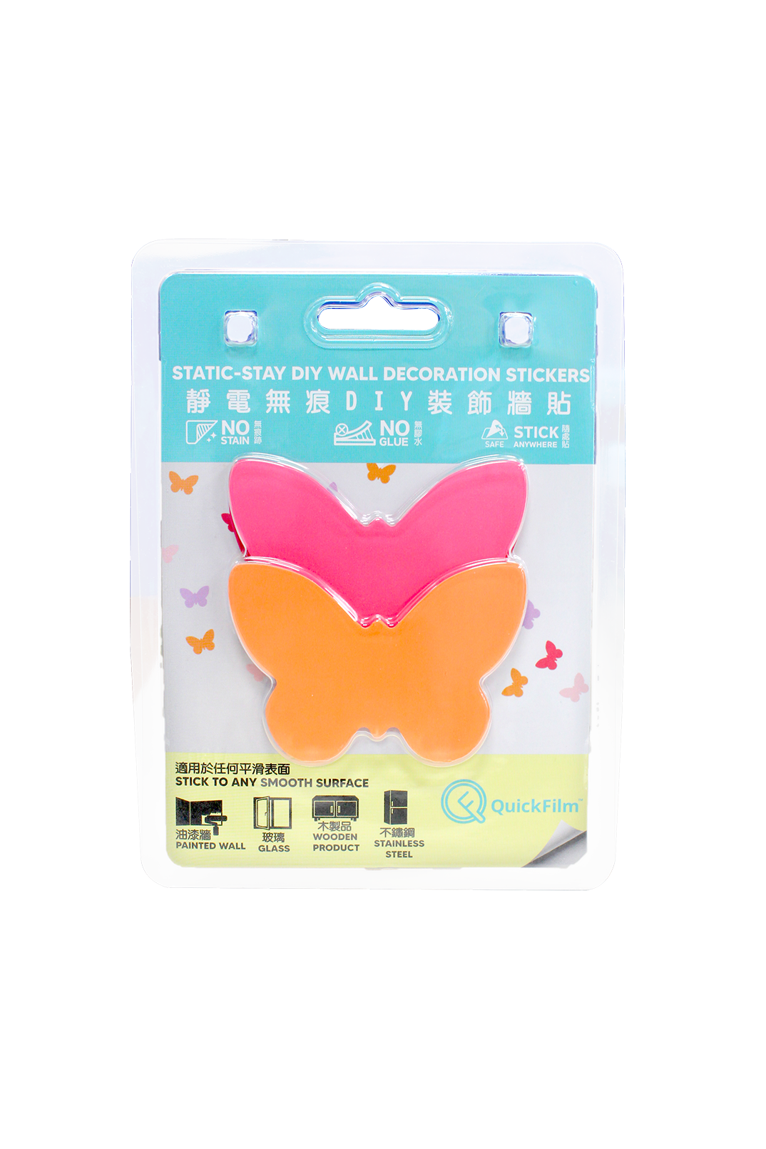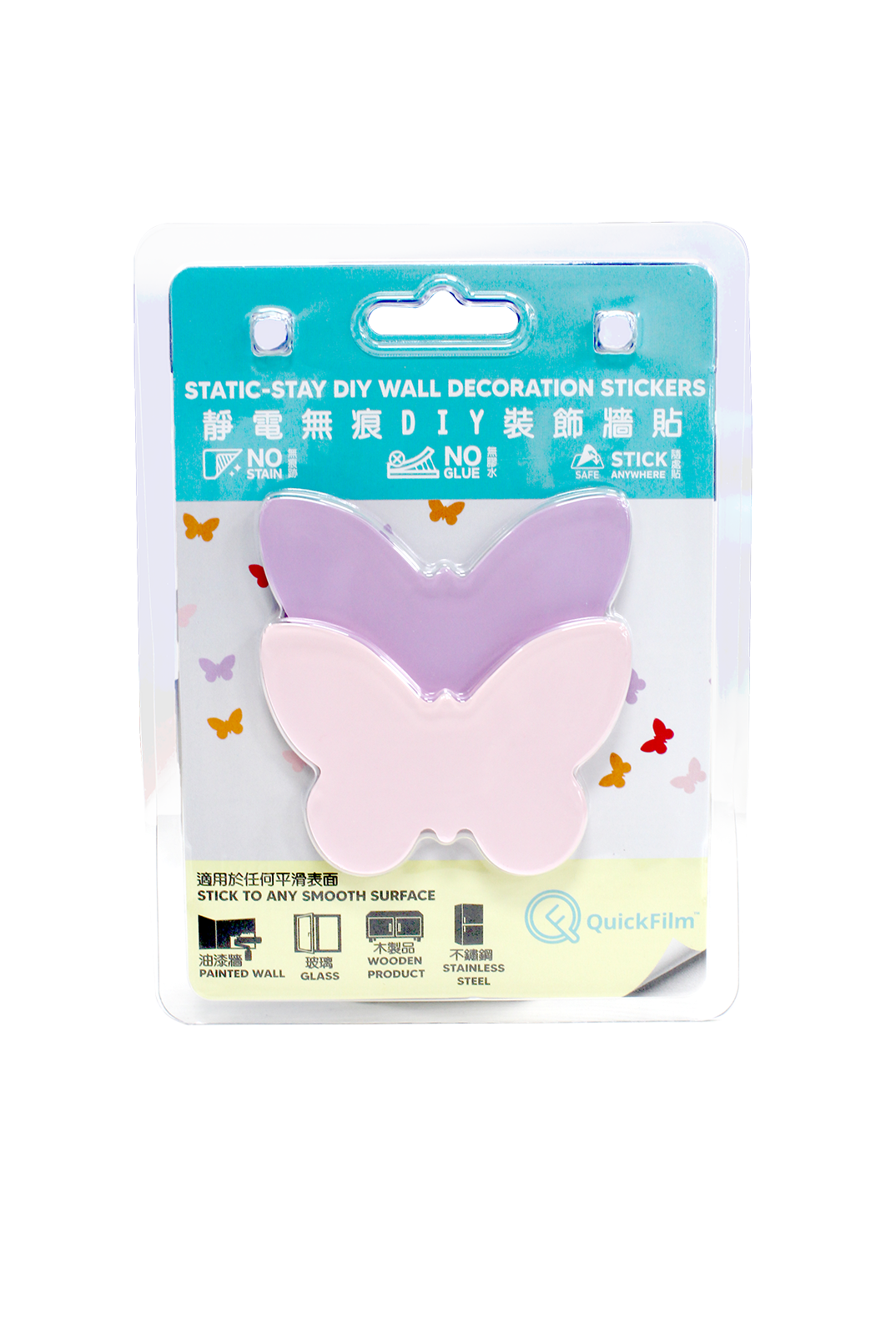 QuickFilm™ Static-Stay Collection does not contain glue, can be moved easily, leaves no trace behind.