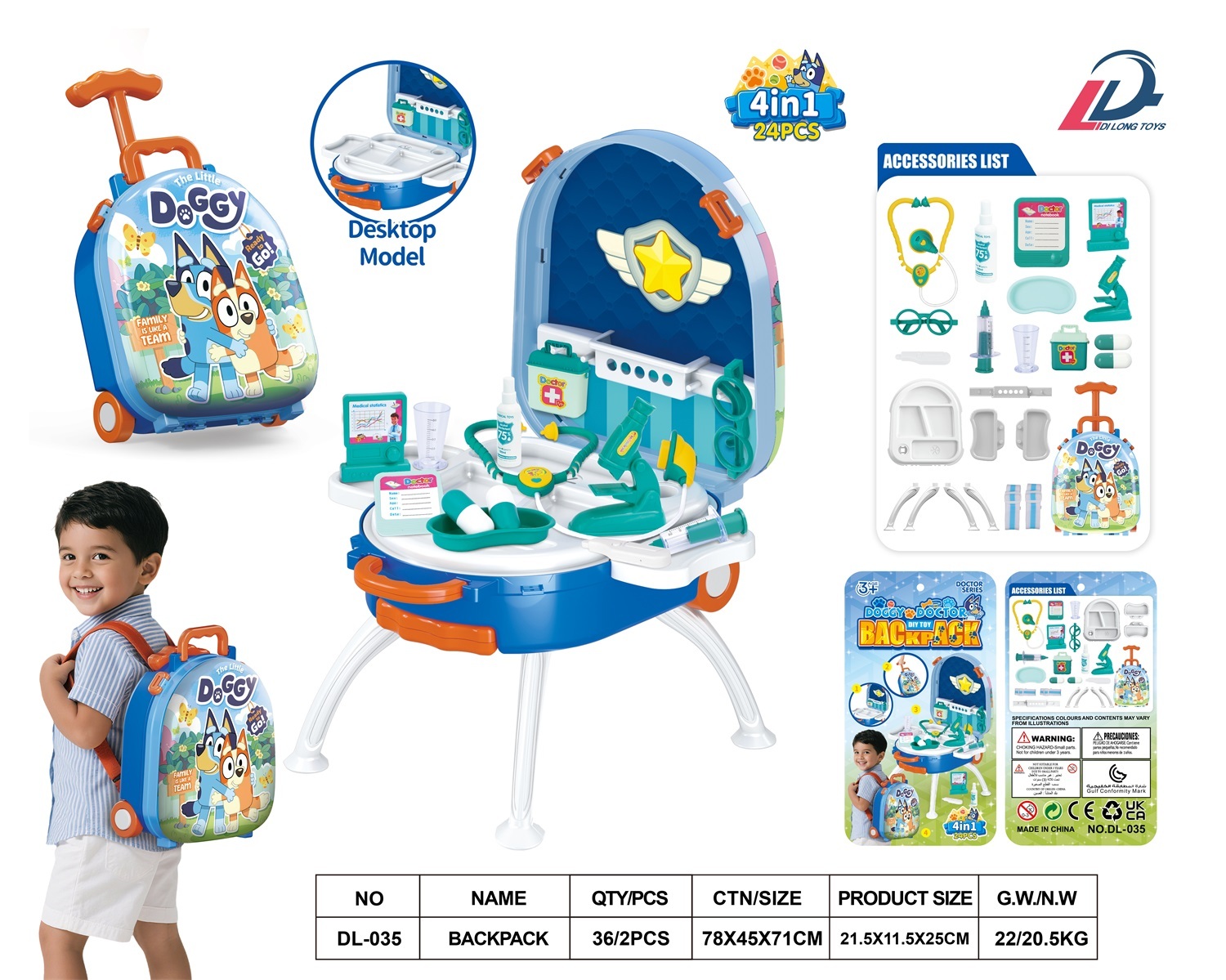 DL-035 4-IN-1 SUITCASE TROLLEY ALLOY BACKPACK SET - BLUEY DOCTOR ROLE PLAY KIT