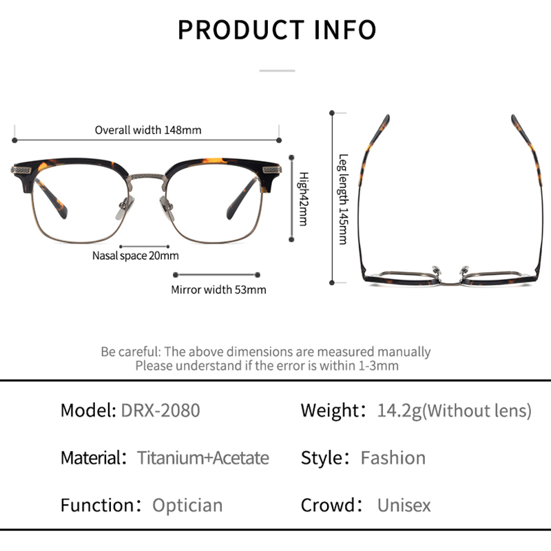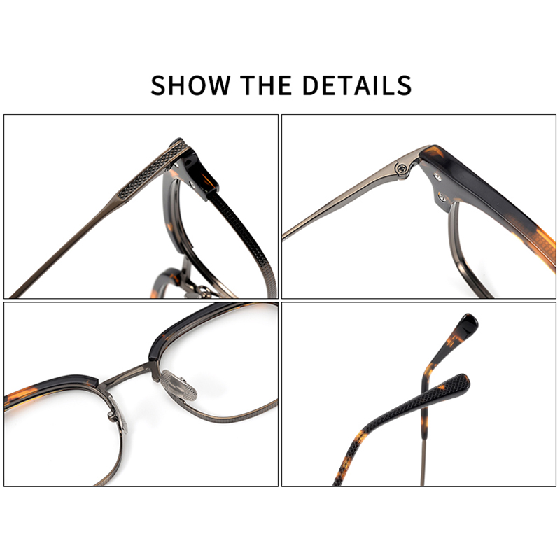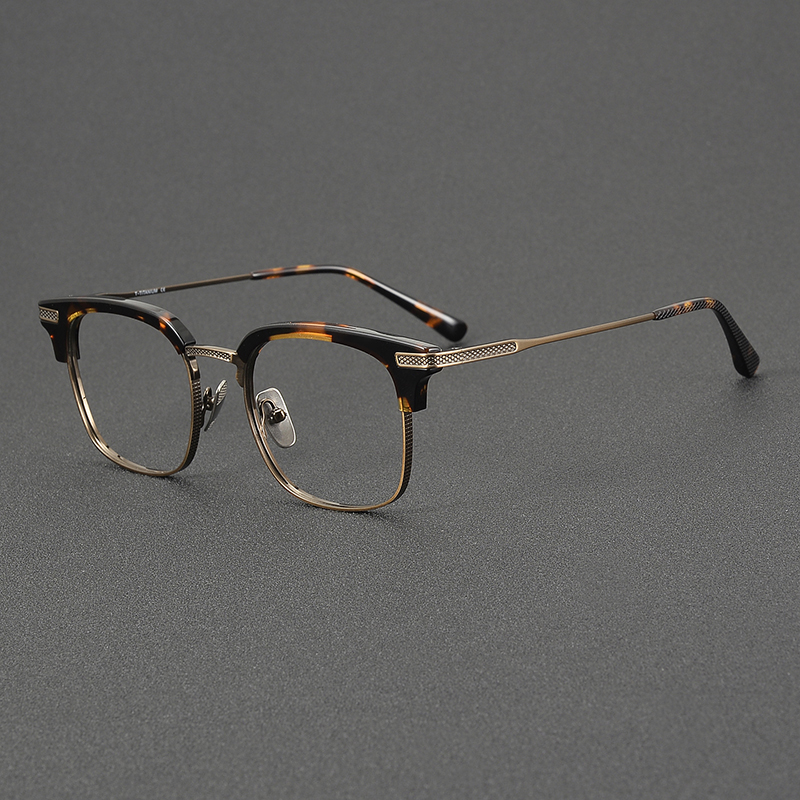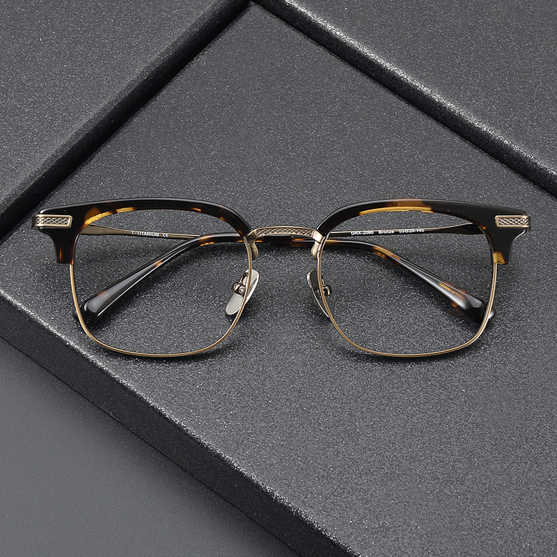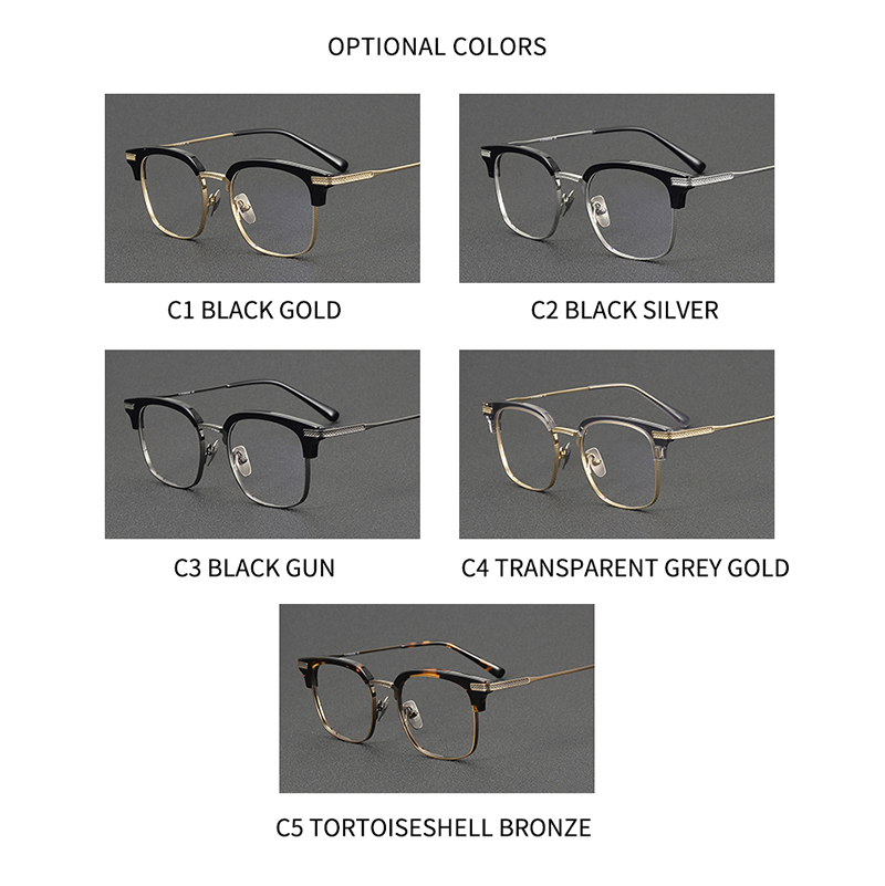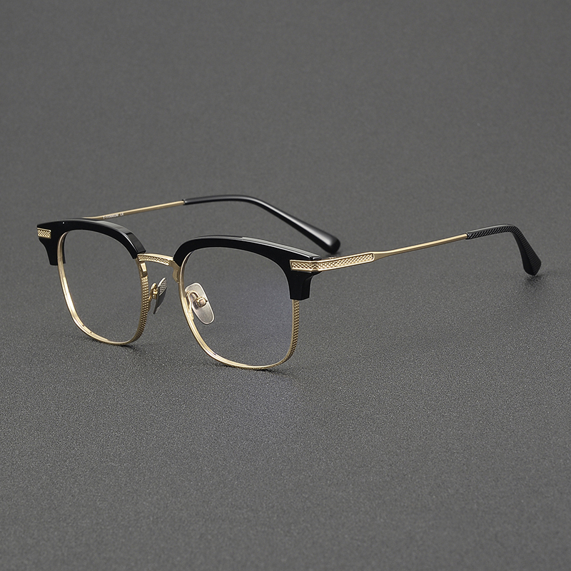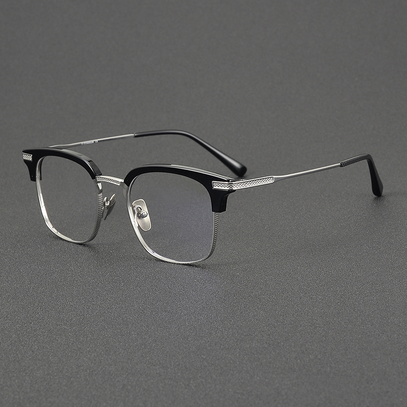 DRX-2080 Square Shaped Titanium And Acetate Combination Glasses