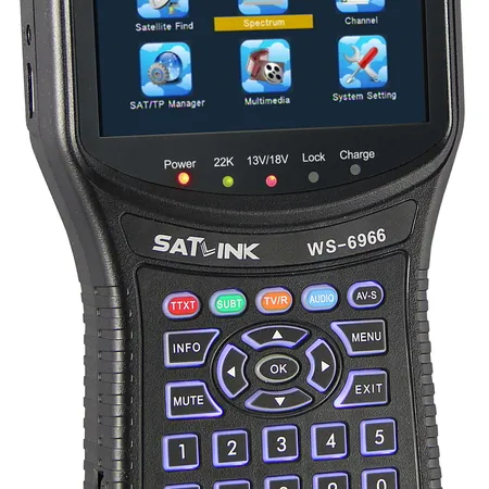 WS-6966 is a DVB-S/S2 and MPEG-2/4 H.264 compliant handheld satellite meter. With its compact size, light weight, intuitive user’s interface, long battery operational hours and rich feature set, the meter provides all functions needed for installation and verification of digital Satellite TV service to residential homes or multi-dwelling units.