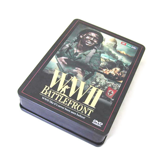 This DVD box is made of quality tinplate for durability. It comes with delicate prints for an eye-catching look. This DVD tin box is a great choice for household use.