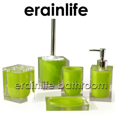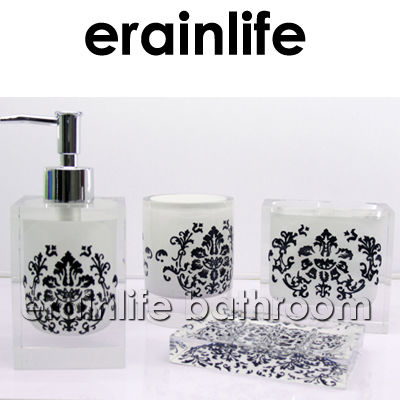 Items: soap dispenser, tumbler, toothbrush holder, soap dish.
