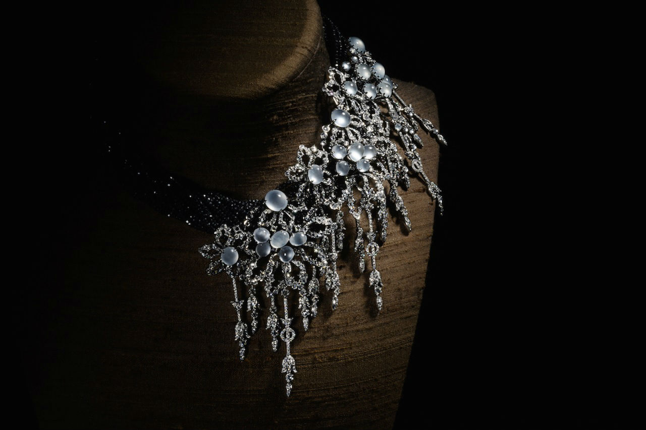 The smooth surface of the exquisite Ice Jadeite Just like water,transformable into ice and snow,With the appearance of the morning dew resting on top of the flower petals,Became snow flowers with a northern wind blow.