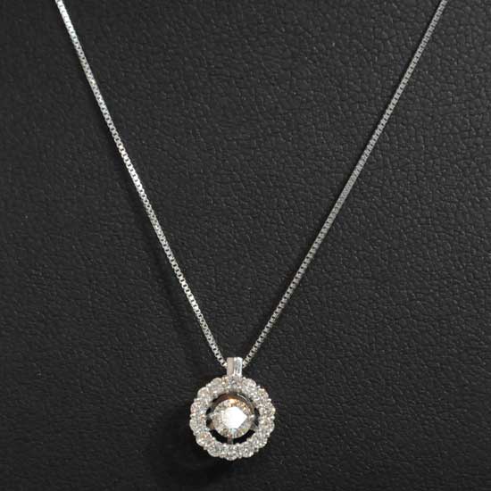 Displayed here is a ladies' pendant with twinkling diamonds (unique twinkle setting invented by us). "Twinkle" refers to the center stone movement.