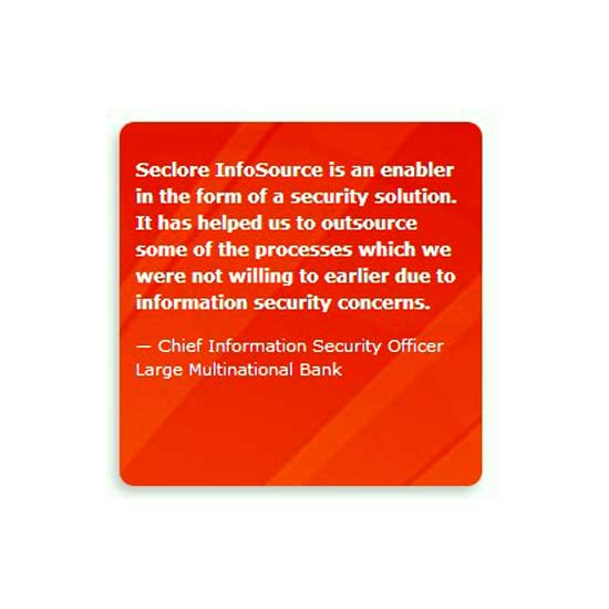 Seclore InfoSource eliminates risks of having digital data privy to unintended recipients. It enables full control of all data being outsourced, and ensures that the data is used only for the purpose it is outsourced and not otherwise, thereby extending the scope of enterprise DRM beyond documents. This also facilitates mitigation of the risk from information breaches whilst enhancing collaboration with outsourced vendors.