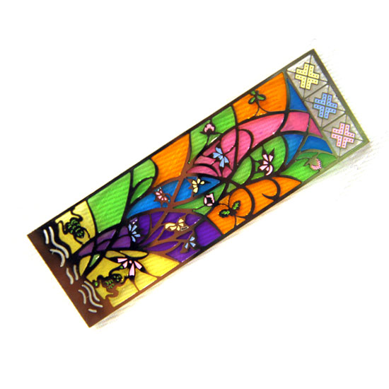 This delicately crafted bookmark features a golden floral frame filled with assorted bright colors. Showcasing elaborate details such as the flowing water and jumping frogs, this bookmark is a delight to any reader. With its sophisticated design and finishing, this bookmark makes an impressive gift.