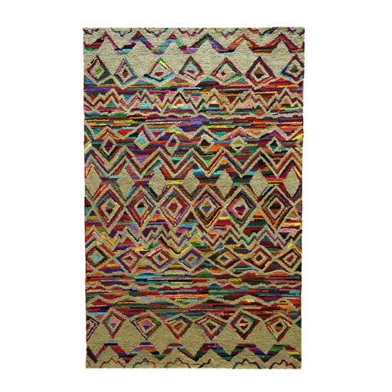 This colorful rectangular-shaped carpet is accented with irregular argyle patterns. The top-quality fiber is finely made from cotton, jute and other natural fibers. It will add warmth and style to your home decor.