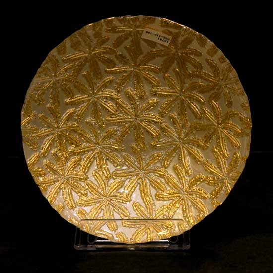 The round glass plate is carved with golden flowers with a gleaming touch. It is handcrafted with an exotic edge. Add an aesthetic sense to your serveware with this glass plate.
