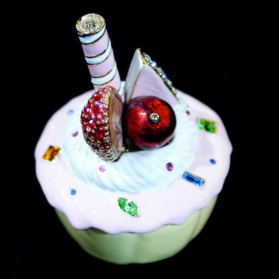 The featured decorative item comes in an exquisite design. Flaunting a cute cupcake appearance, this decorative item showcases a sense of loveliness. The metal and alloy construction promises enduring use.