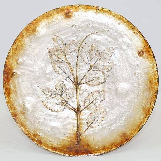 The round decorative plate features a bush pattern and a rustic-finish hem for an antique touch. It comes with a plate stand for displaying. Add an artistic touch to your home with this delicately crafted plate.