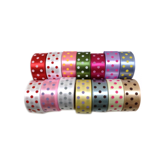 This decorative ribbon boasts a sleek and high-gloss surface. The allover cute dot prints add a touch of style to the whole piece. Different designs are available for you to choose from.