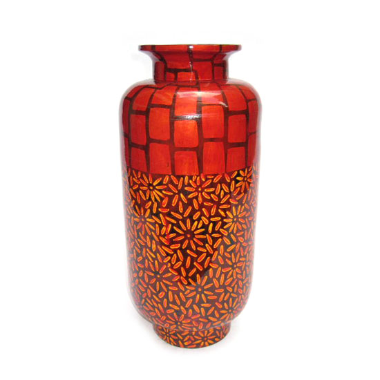 This decorative vase comes with a red finish. It features a flat belly with a combination of brick and floral patterns. It is a perfect decorative items for both households or hotels.