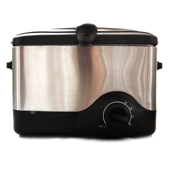 This two-toned deeper fryer showcases a sleek and modern appearance. The fryer features easy temperature controls for precise frying. It offers a quick and easy solution to make crisp fast food at home.