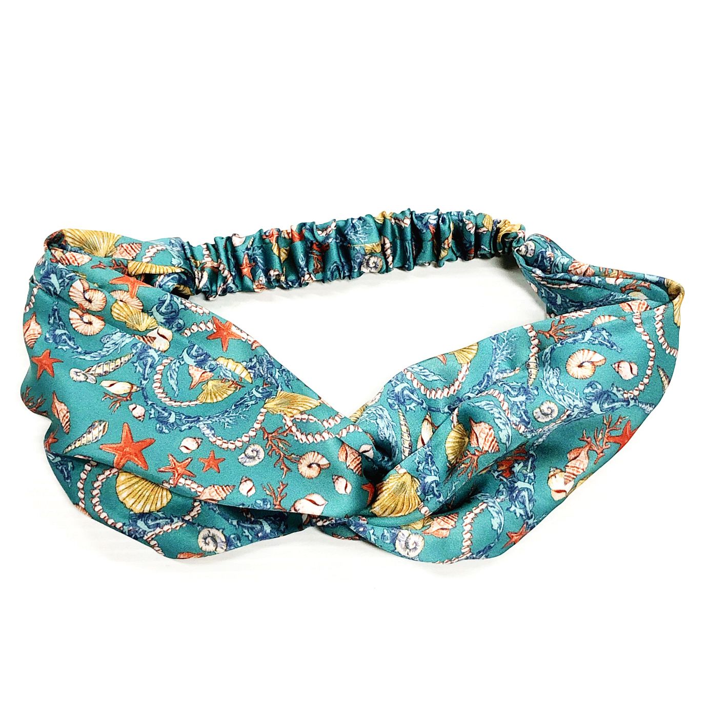 This is a piece of delicate colorful head band highlighted by the deep sea pattern.