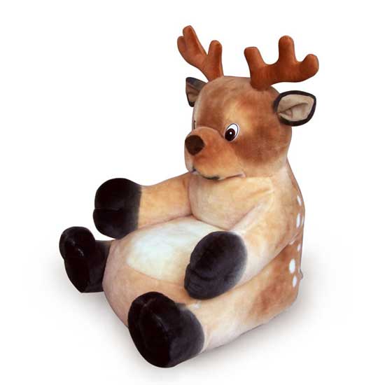 This children's armchair features the shape of a seated deer. Sit on this armchair and be hugged by the lovely deer. Beautiful white dotted patterns decorate the back of the deer.