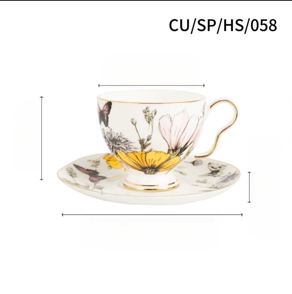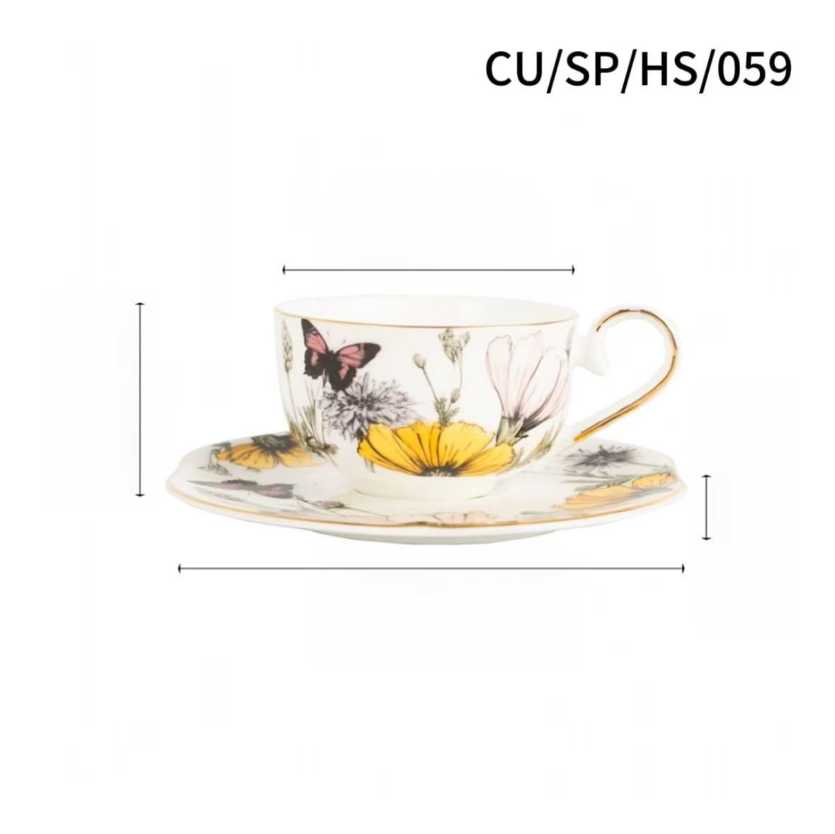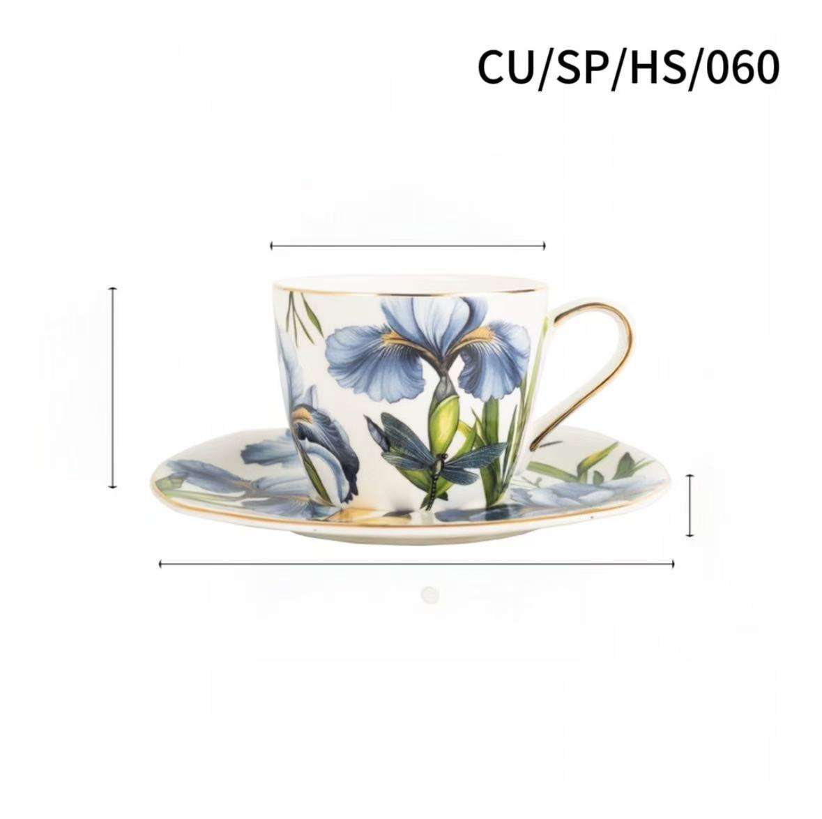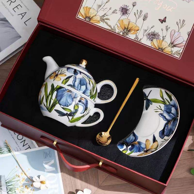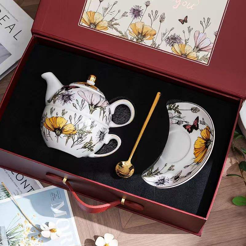 Deluxe British Floral Pattern Bone China Tea-for-one Set/Available in Yellow and Blue Color Coffee cup