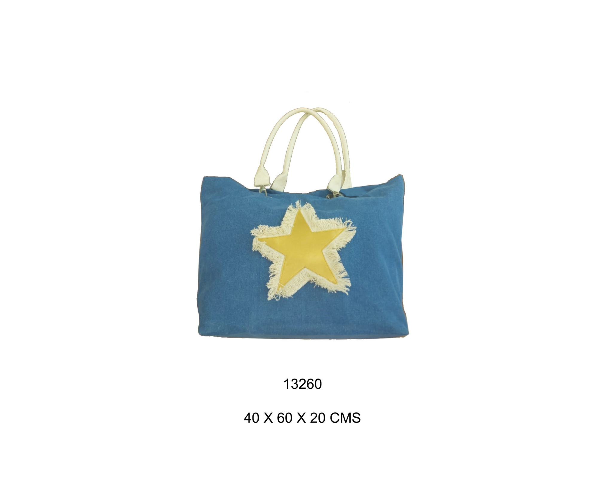 Washed denim and 12 ozs Natural Cotton Fashion bags with 60 CMS Rolled Tape Handles.