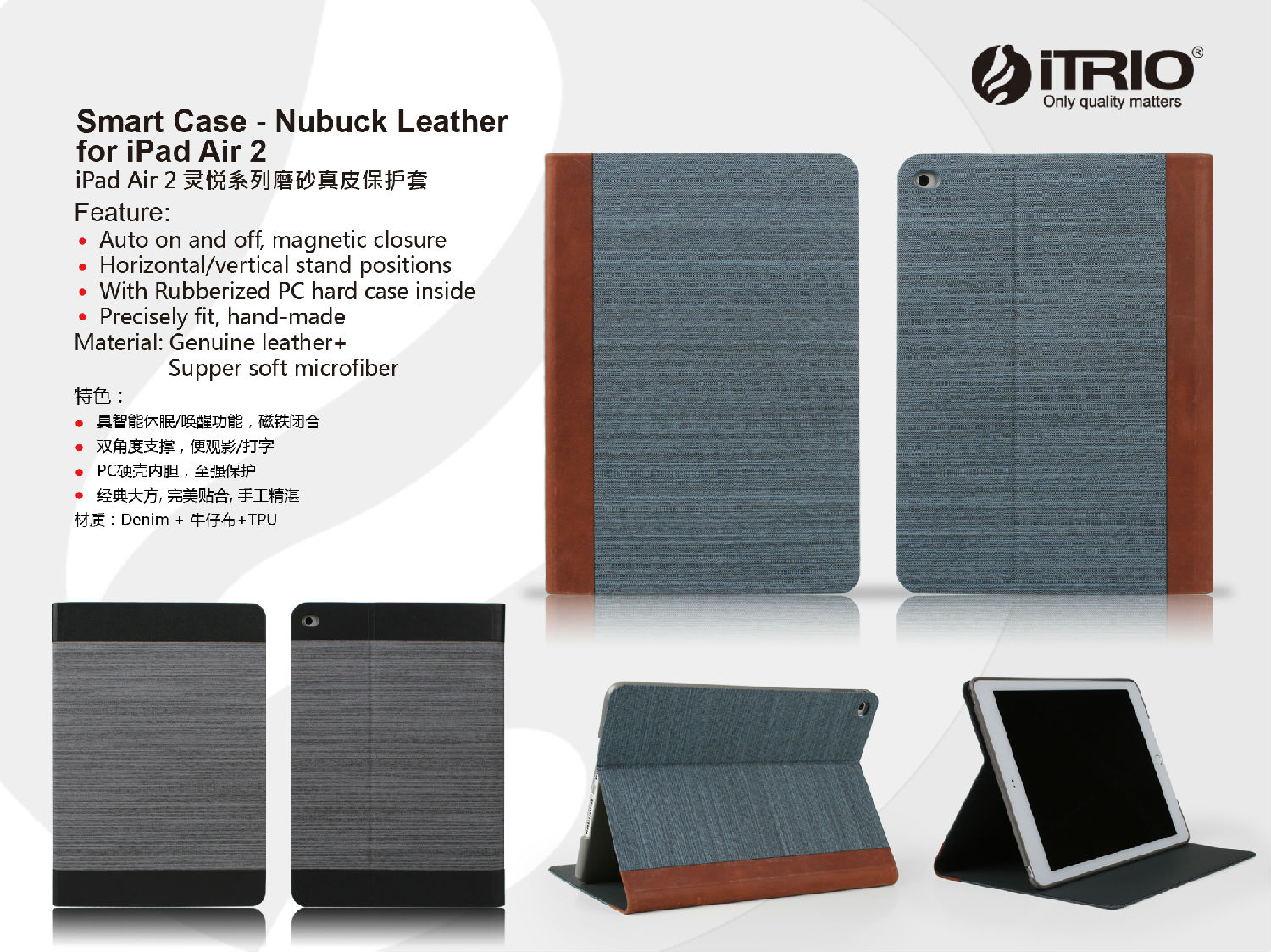 Denim & Genuine Leather Hybrid Cover For Ipad Air 2
