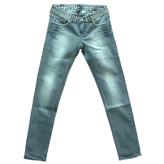 Featured is a pair of denim jeans with exquisite washed details for a stylish look. The jeans are well made with quality denim fabric for a flattering fit. The waistline is studded, channeling a unique charm for your daily look.