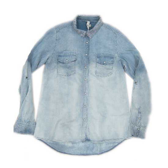 This trendy denim shirt features a gradient hued design for distinctiveness. The collar with dotted patterns adds a spicy touch to the look. This charming long-sleeved denim shirt is a wonderful addition to your wardrobe.