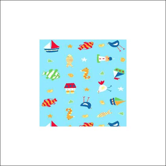 There are marine patterns such as cartoon fish, yatch, seahorse, fish, ship, light house and etc.