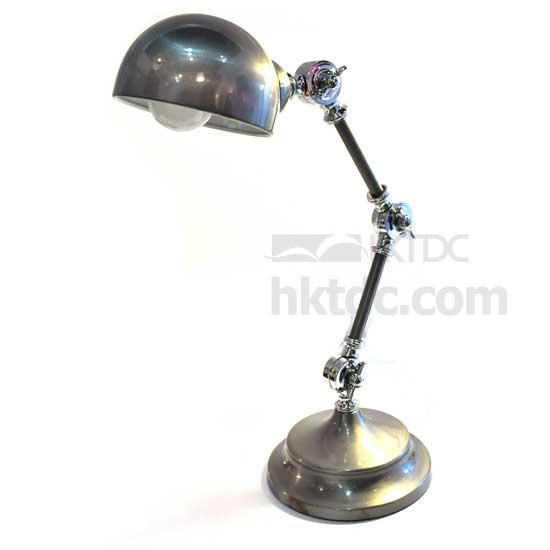 This electric desk lamp comes in a contemporary silvery color and a glossy finish, lending a sense of futuristic appeal to your work desk. It features a slender design and a small, sturdy base. Spice up your home instantly with this modern desk lamp.
