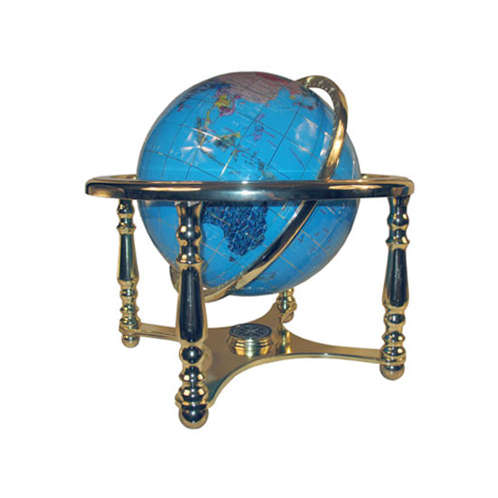 This is a desktop globe that is meticulously crafted with exquisite details. The geographic locations of the world are clearly marked on this globe. The golden metal stand adds a touch of luminousness to this design.