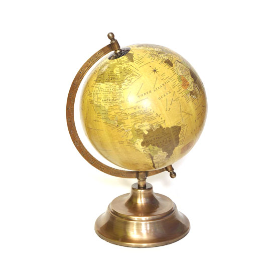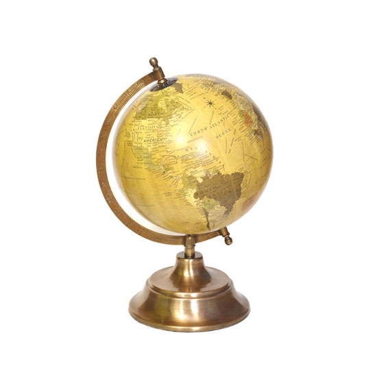 This is a desktop globe that features a round base and a rotating body. It is made of quality material for long lasting durability. This desktop globe is finished with a high-gloss surface.
