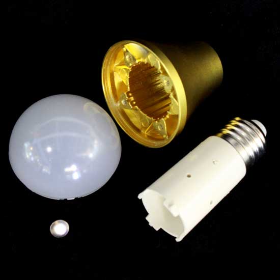 This detachable bulb features a semi-spherical white diffuser, a golden-toned metal body and a screw base. The high-performance bulb shines with extra brightness with a wide beam angle. It is suitable for various domestic and commercial lighting applications.