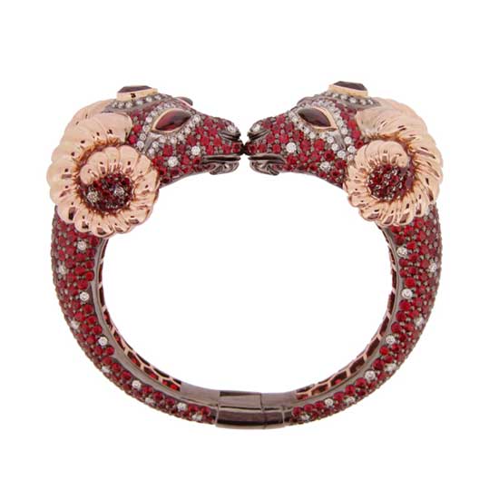 The exotic bangle shows a striking red finish that easily captures attention. The twin-goat design on both ends adds a touch of uniqueness. Add a glamorous touch to your evening outfit with this gorgeous bangle.