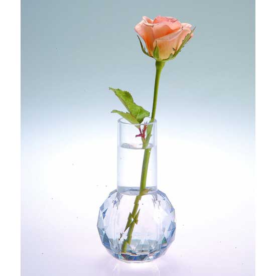 This is an acrylic vase featuring a diamond-cut globe base with a long column neck to imitate the look of a laboratory flask. It is transparent to allow a clear view of the interior. Accommodate your flowers with this clear acrylic vase.