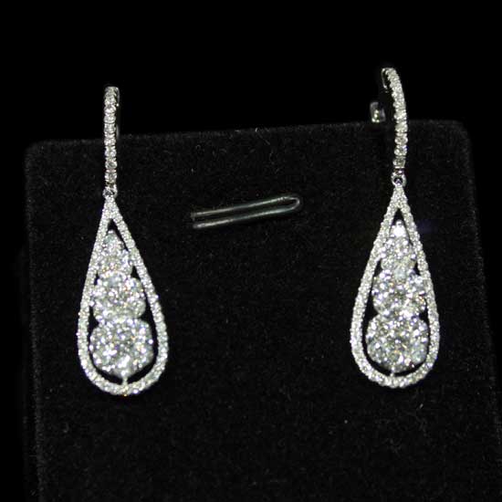 These alluring dangling earrings feature a tear-drop design. The earrings are finely crafted of shimmering white diamonds set in white gold. The elegant earrings are wonderful accessories for casual or formal occasion.