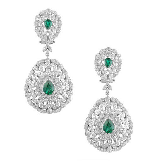 - 5ct T.W. diamond chandelier earrings with emerald stones.