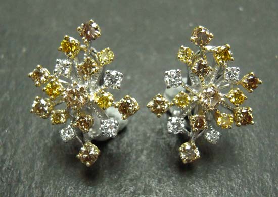 This beautiful pair of snowflake-shaped earrings features sparkling diamonds in white, yellow and brown, creating a feel of harmony. Crafted of 18-karat white gold, the earrings showcase a stud design.